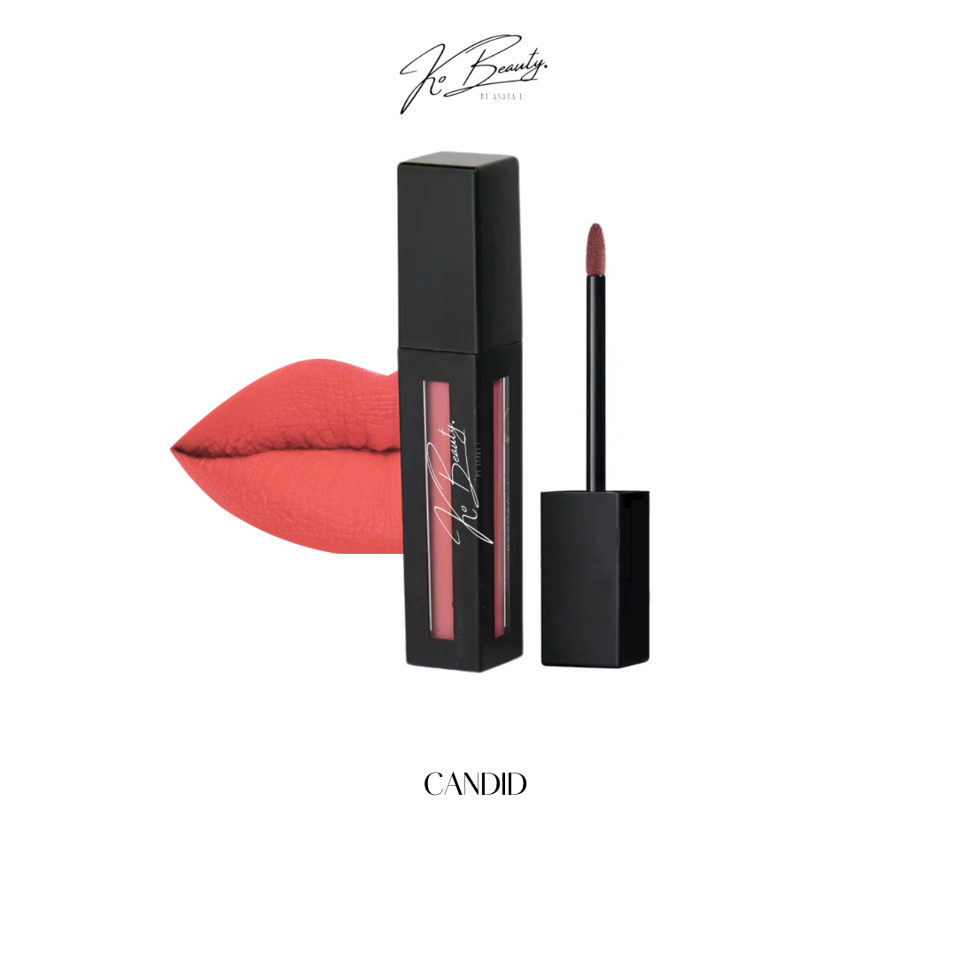 CANDID - a velvet, matte lipstick that's richly pigmented and curated to last 24 HOURS with minimal to no touch ups.